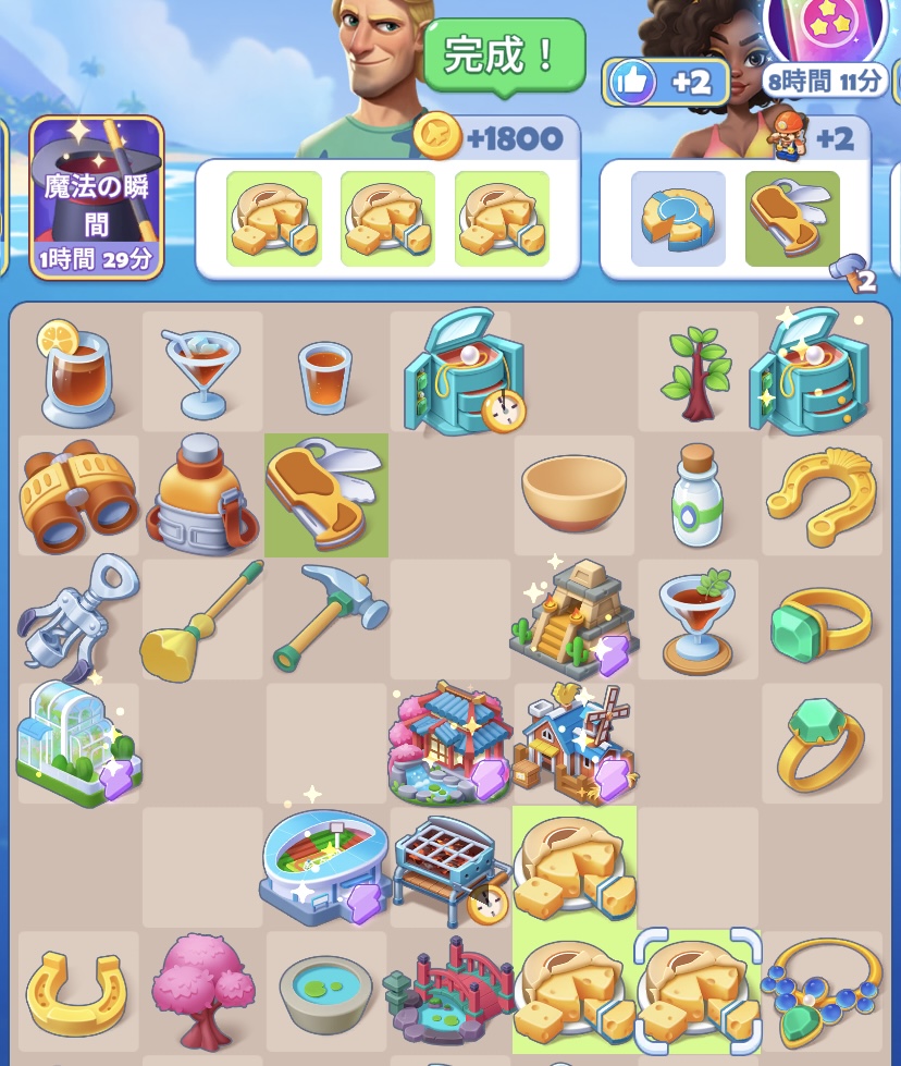 注文で獲得できるコインも後半になるにつれて上がっていき、1つの注文で5000コイン貰えることもあるため、注文のアイテムを揃えるついでに余りのアイテムをマージして隠し注文をこなしていくのが効率良かったです!