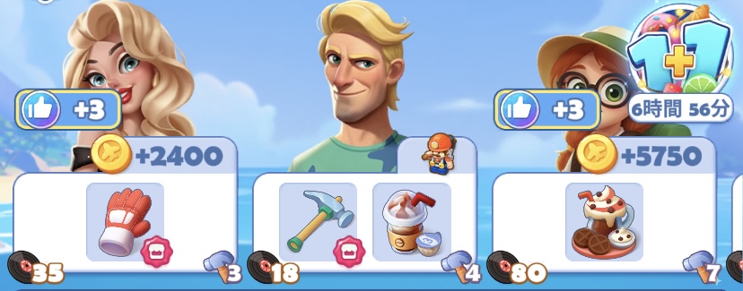 終盤では建設・リフォームの必要コイン数がぐんと上がり、1回12000コイン必要になることもあるので、41000コイン獲得できるのはかなり心強いです。