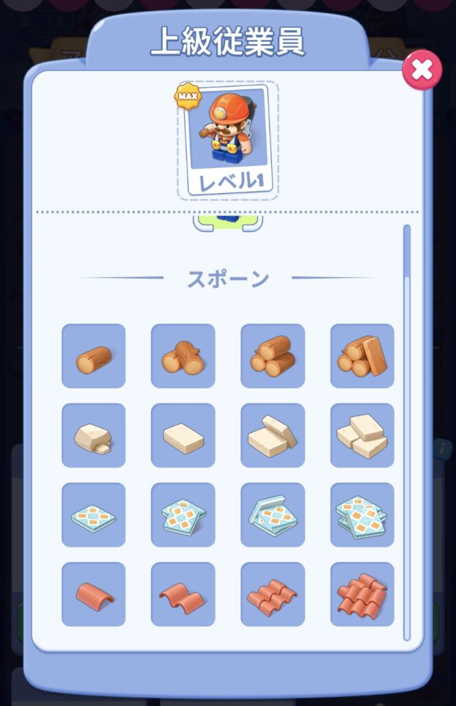 作業員は注文のほかに、イベントでも獲得出来ることがあるので、獲得したら道具をマージして獲得していきましょう。