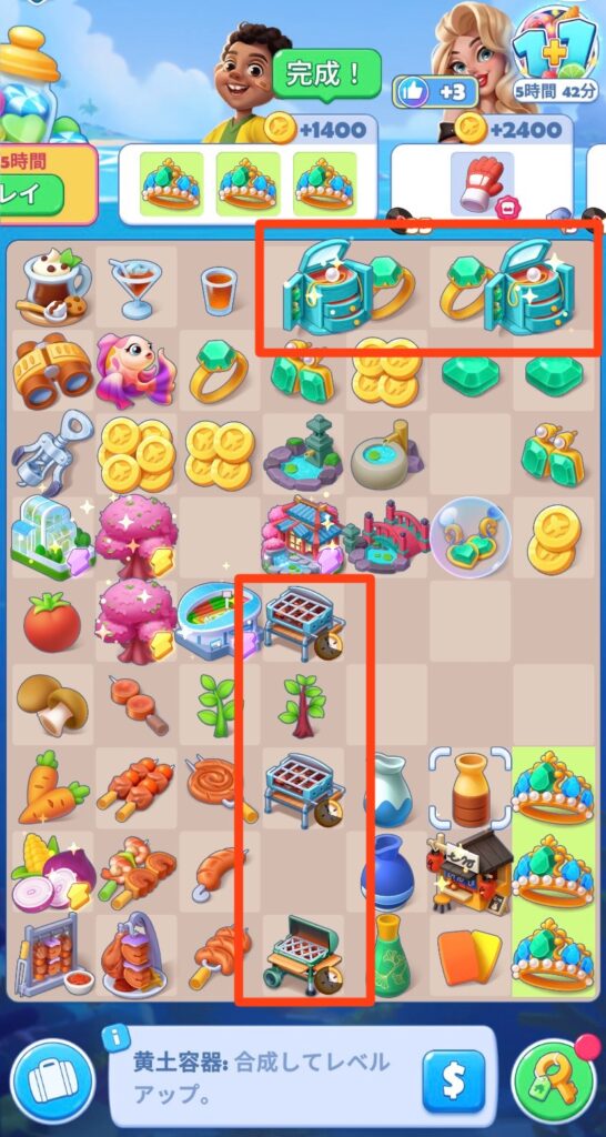 また、スポーナーの「ブラジルバーベキューレストラン」が排出する「野菜」でも最大レベルである「タマネギとトウモロコシ」を2つ揃えることで3700コインが貰える隠し注文が発生します。