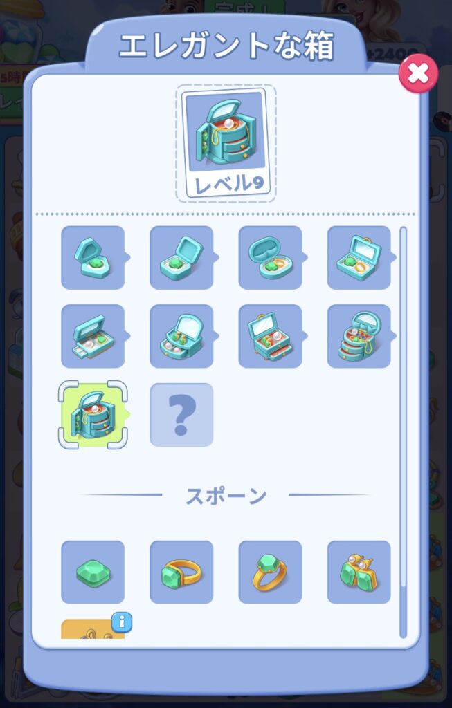自動生成スポーナーの中でも序盤に獲得できる「宝石ボックス」から排出される「ヴィンテージジュエル」シリ-ズは、隠し注文の中の獲得コイン数としては少ない部類になりますが集めやすく、序盤から終盤までかなり重宝します。