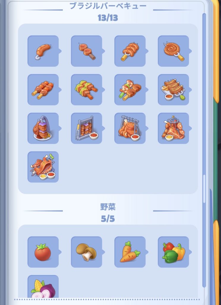 特に「ブラジルバーベキュー」シリーズの「グリルのごちそう」は41000コインを獲得することができるため、1つ作成して隠し注文を完了させれば、一気にレベルを上げていくことができます。